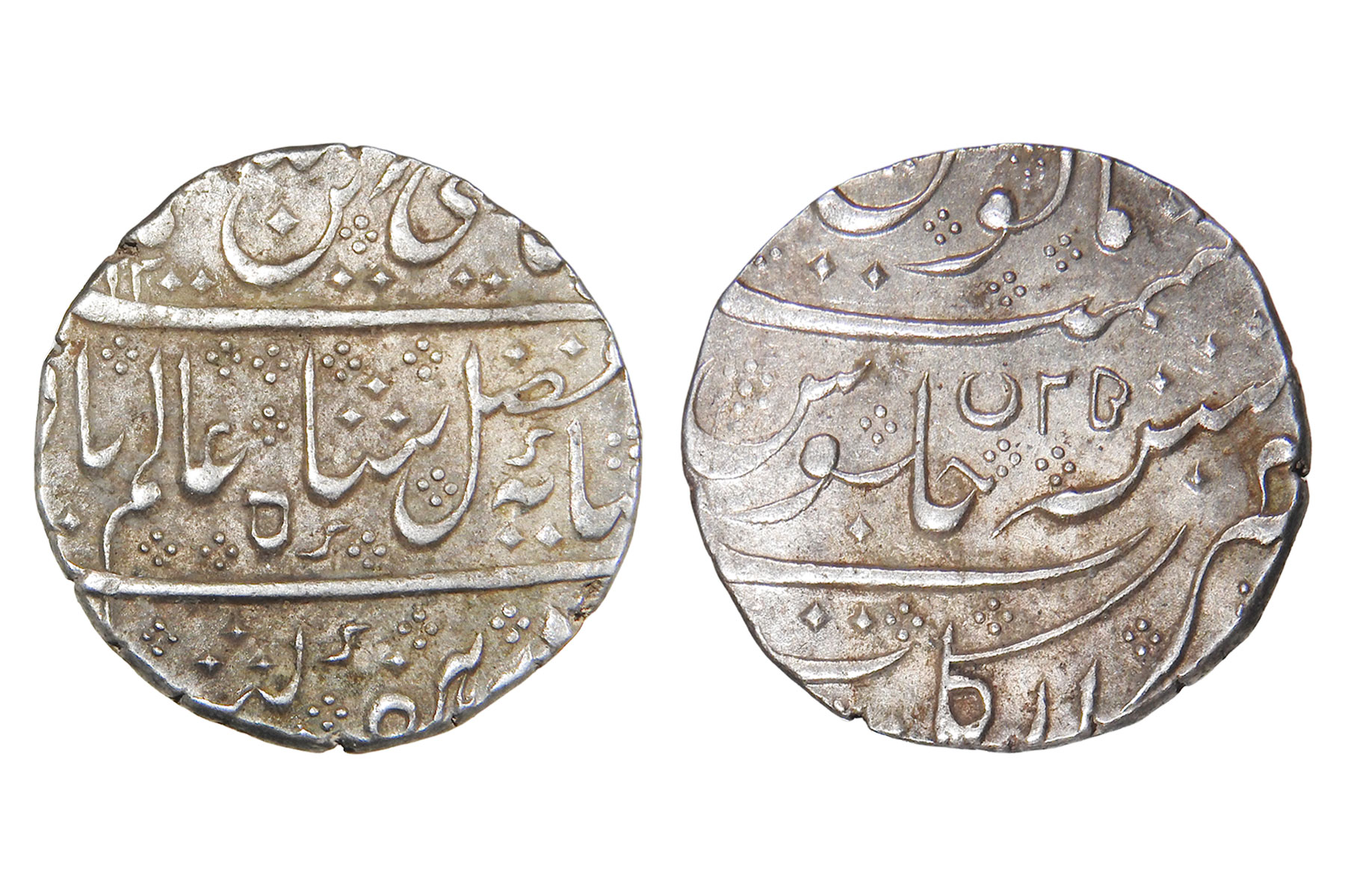 French India, In the name of Mughal king- Shah Alam II, Silver Rupee, 11.60grms, AH1200/RY25, Minted at Arkat, Extra Fine+, Very Scarce
