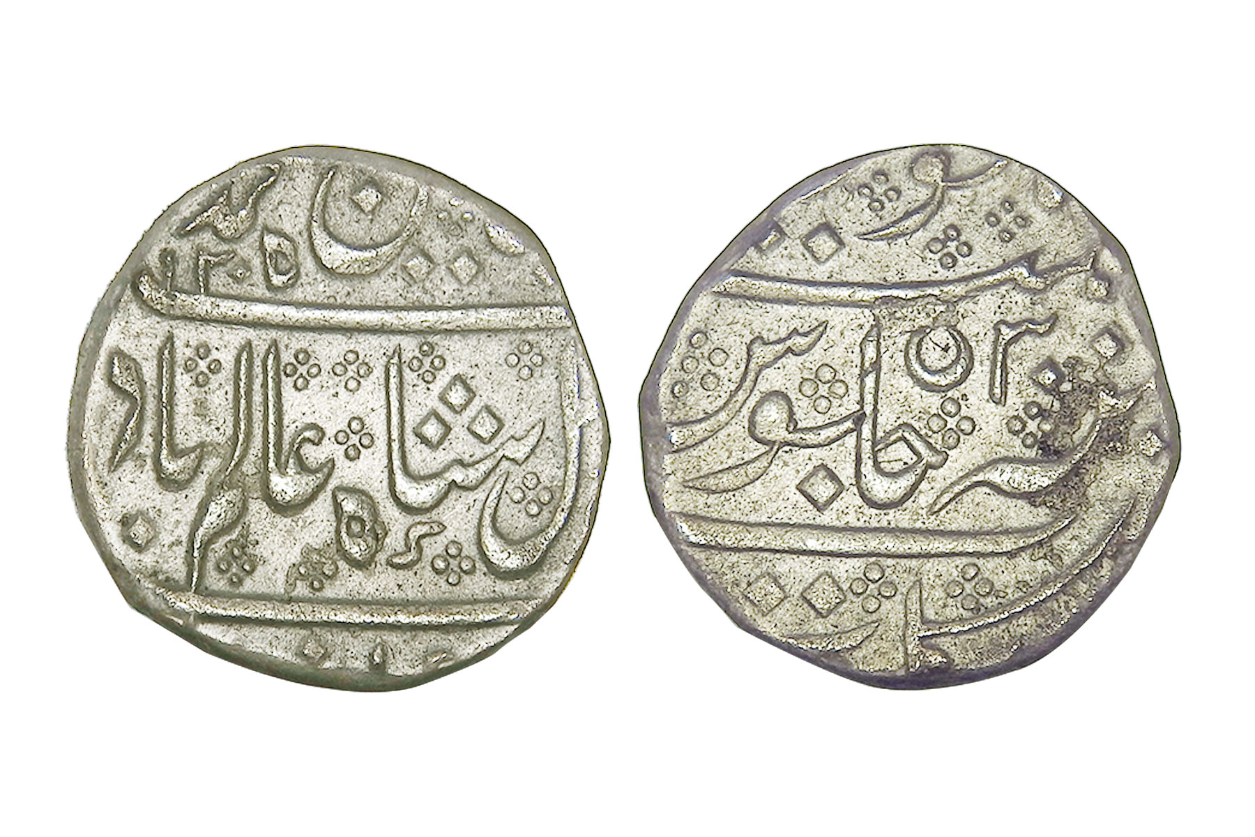 French India, In the name of Mughal king- Shah Alam II, Silver Rupee, 11.30grms, AH1205/RY30, Minted at Arkat, Extra Fine+, Very Scarce