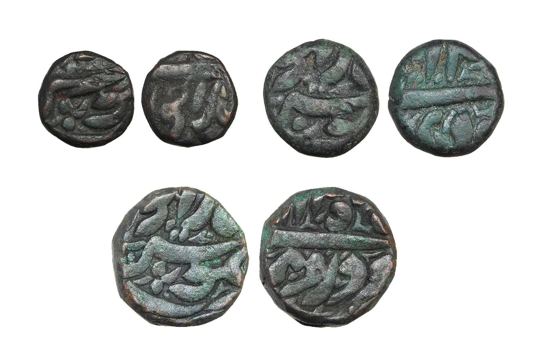 Mughal Empire, Akbar(c. 1556-1605CE), 3 Coins, Copper Dam, 1/2 Dam, 1/4 Dam, 20.70grms,9.40grms & 4.90grms, Minted at Balapur, 1/4 Dam is unique as both obverse and reverse has the mint mentioned, Very Fine+, Very Rare. Balapur is associated with Akbar’s Deccan campaigns during the struggle against the Nizam Shahi dynasty of Ahmadnagar and allied Deccan powers. The mint functioned in the context of Mughal military operations aimed at securing Berar and the eastern Deccan. Coins of Akbar from Balapur reflect imperial assertion in a contested frontier zone during active warfare.