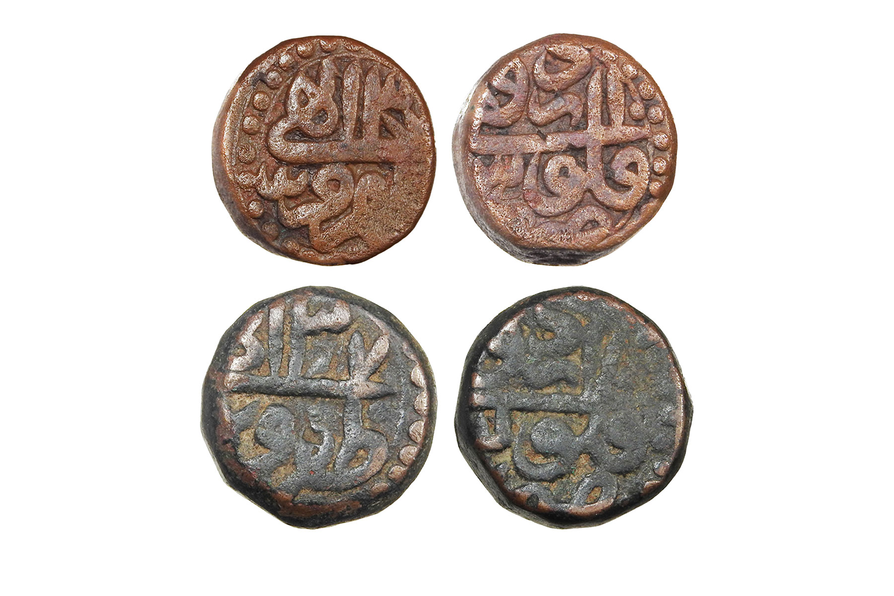 Mughal Empire, Akbar(c. 1556-1605CE), 2 coins, Copper Dam, 20.50grms & 20.00grms, Illahi 37, Minted at Urdu Zafar Qarin, Very Fine, Scarce Under Akbar, Urdu-e-Zafar Qurani refers to coins carrying a Qurʾanic victory legend (zafar), used during periods of warfare to invoke divine support. These coins were struck at multiple regular mints (Delhi, Lahore, Agra, etc.), but the legend identifies ideology