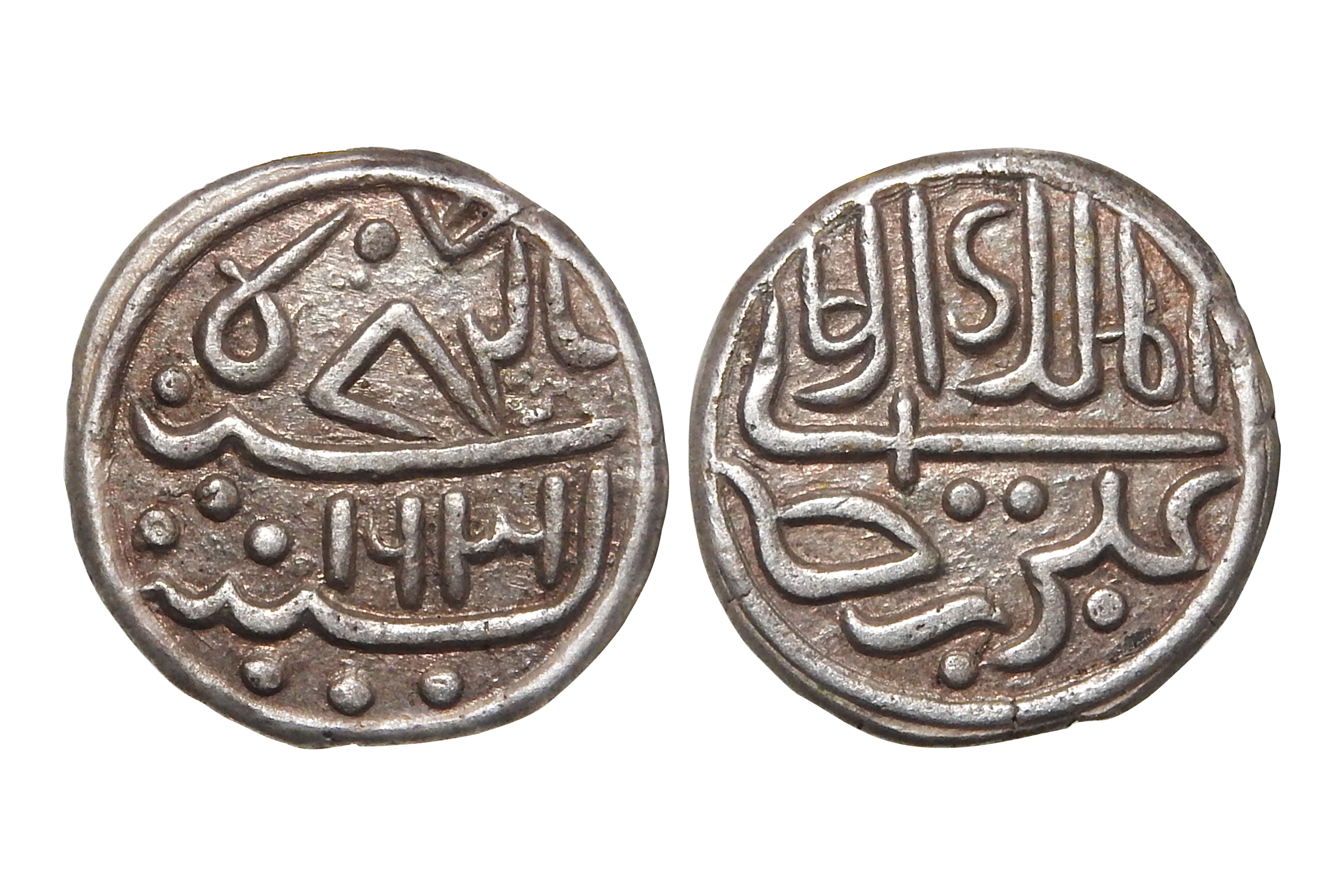 Cannanore State, Arakkal Dynasty, Ali Raja Kunhi Amsa II(c. 1745–1777CE), Silver 1/5th Rupee, 2.20grms, AH1631, Error Date for AH1231, Obv. Persian legend "Al mulk-ul wali Ali Raja", Rev. Sanah 1631AH, Uncirculated Condtion, with complete border on both sides visible, Exceedengly Rare date & error