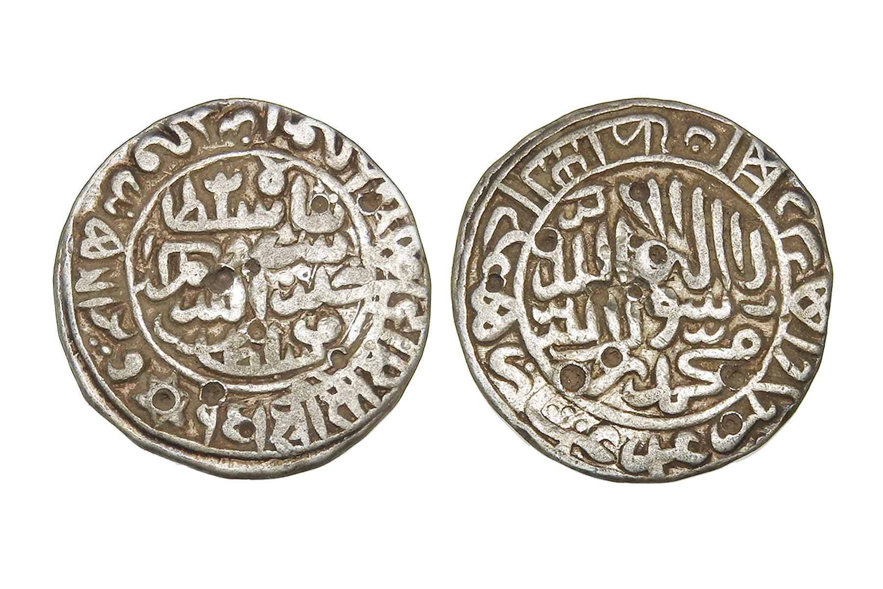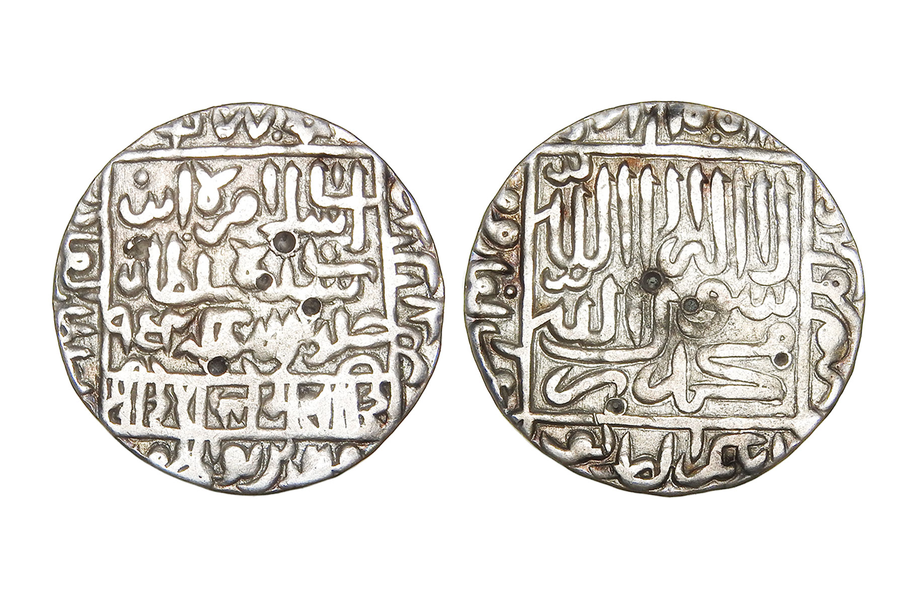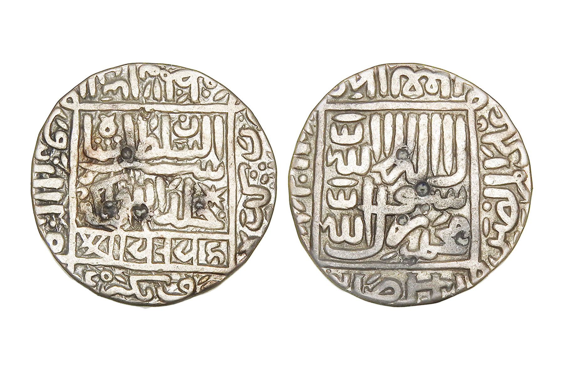 Delhi Sultanate, Suris, Islam Shah Suri(c. 1545-1552CE), Silver Rupee, 11.10grms, Mintless type, AH954, G&G#D980, Usual legends, caliphs type 3, Both sides within square, 1477 in obverse top margin. A Bengal type, probably struck at the provincial capital, Large Flan Size, Very Fine+, Scarce He crushed Afghan rebellions led by Adil Shah Suri, Ibrahim Khan, and eastern Afghan chiefs in Bihar and Bengal. He fought Rajput rulers in Malwa and Bundelkhand, besieged Gwalior, and kept constant pressure on Humayun, preventing any Mughal comeback until his death. No lasting alliances—rule sustained by force.
