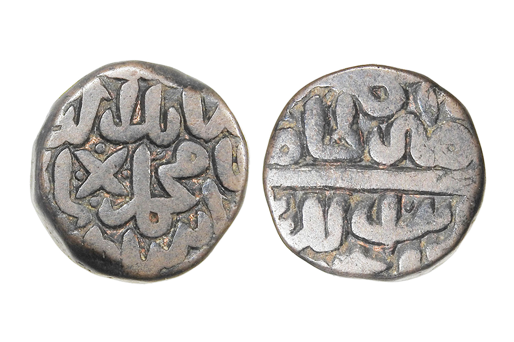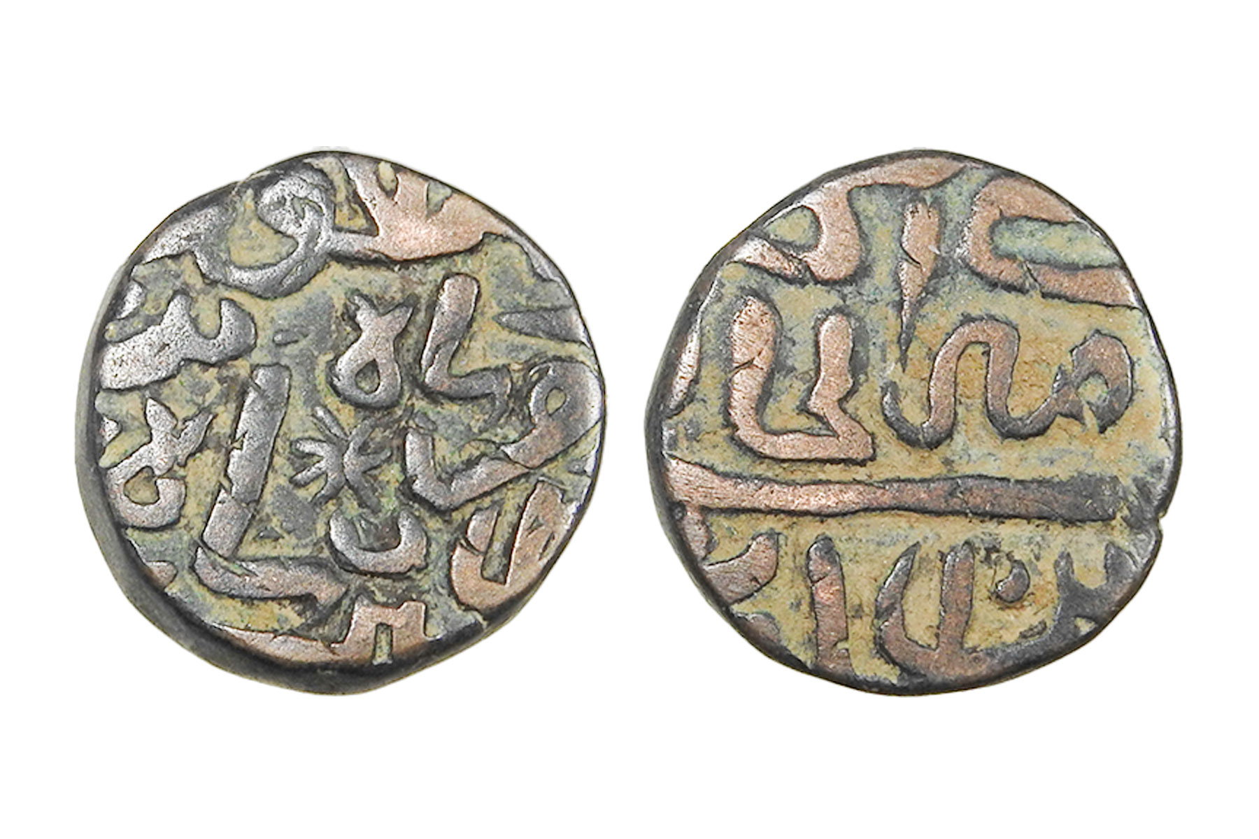 Delhi Sultanate, Suris, Islam Shah Suri(c. 1545-1552CE), Copper 1/8 Paisa, 2.50grms, Mintless Type, Obv. shāh/ islām / sher shāh / sulļān, Rev. khalifat al-zamān al-'ādil, G&G#D1085, Very Fine+, Very Scarce. 1/8 paisa coins are extremely rare. They were emergency, fractional issues, struck in very small quantities for micro-transactions in local markets. Islam Shah’s administration focused on full paisas, not tiny fractions. Their tiny size, rapid wear, melting, and neglect by hoarders caused very low survival. Many mints issued them briefly or not at all.