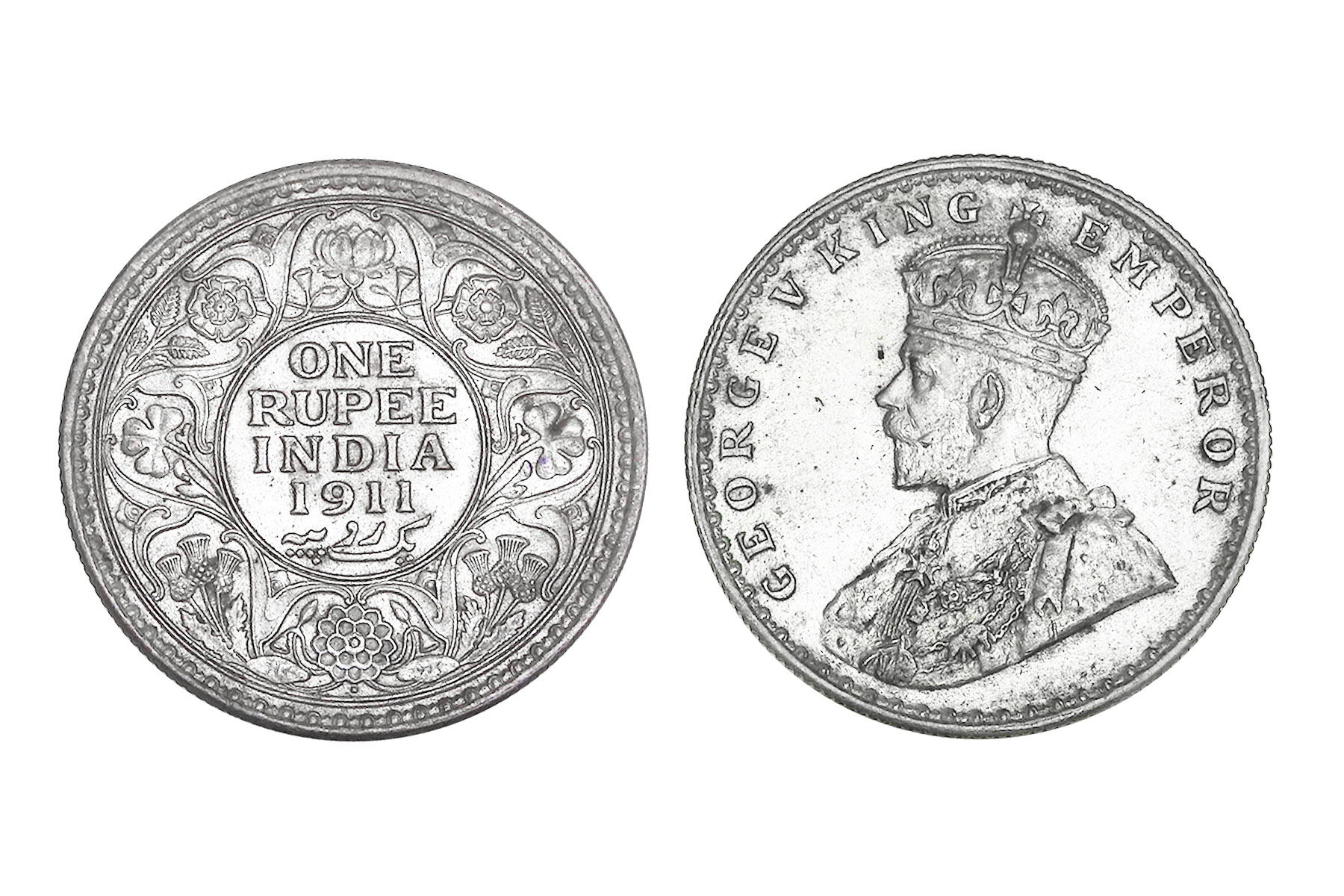British India, George V, Silver Rupee, 11.66grms, 1911, GK#1022, Dot, pig type, Minted at Bombay, Uncirculated, Scarce