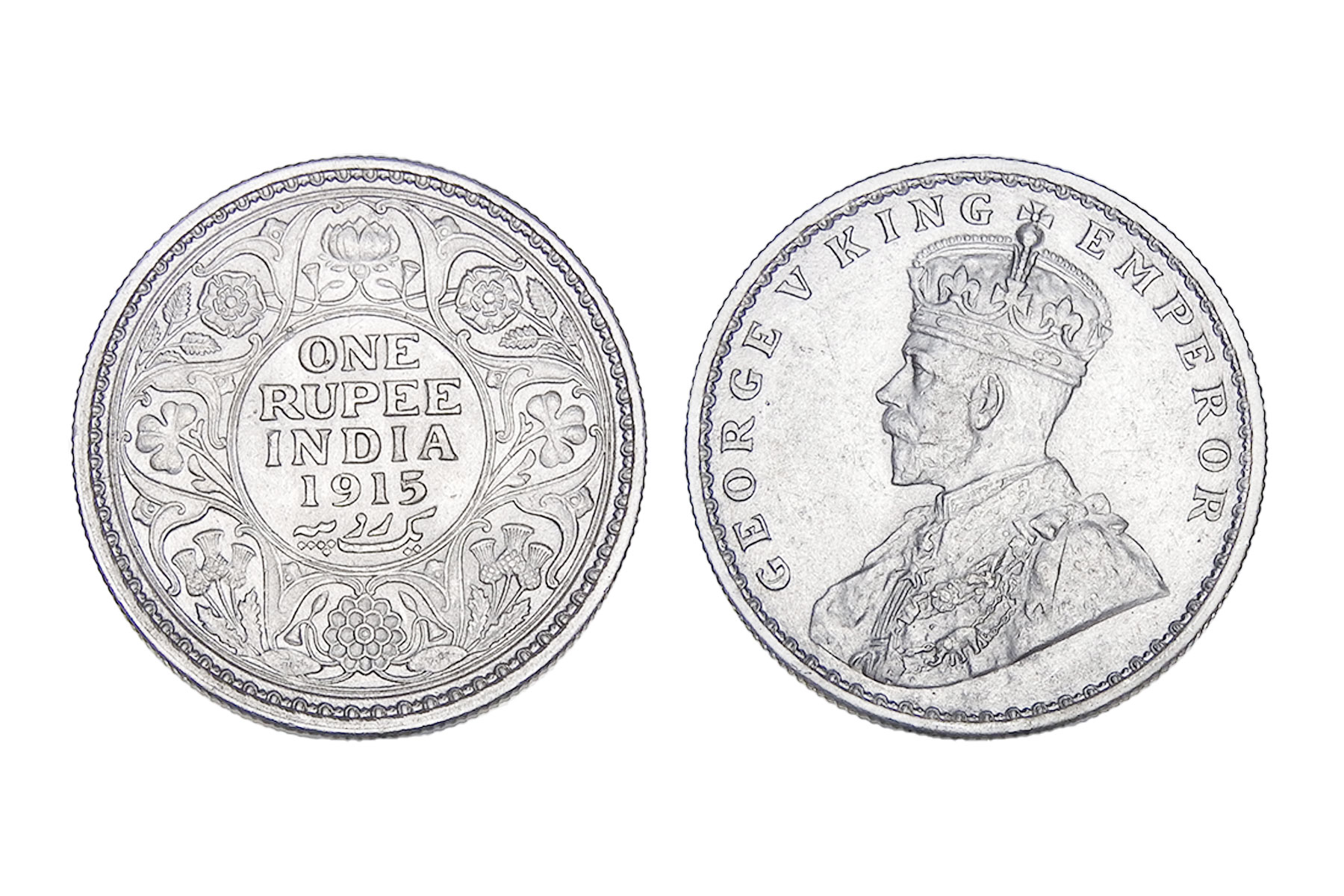 British India, George V, Silver Rupee, 11.66grms, 1915, GK#1031, No Dot, Minted at Calcutta, Uncirculated, Scarce