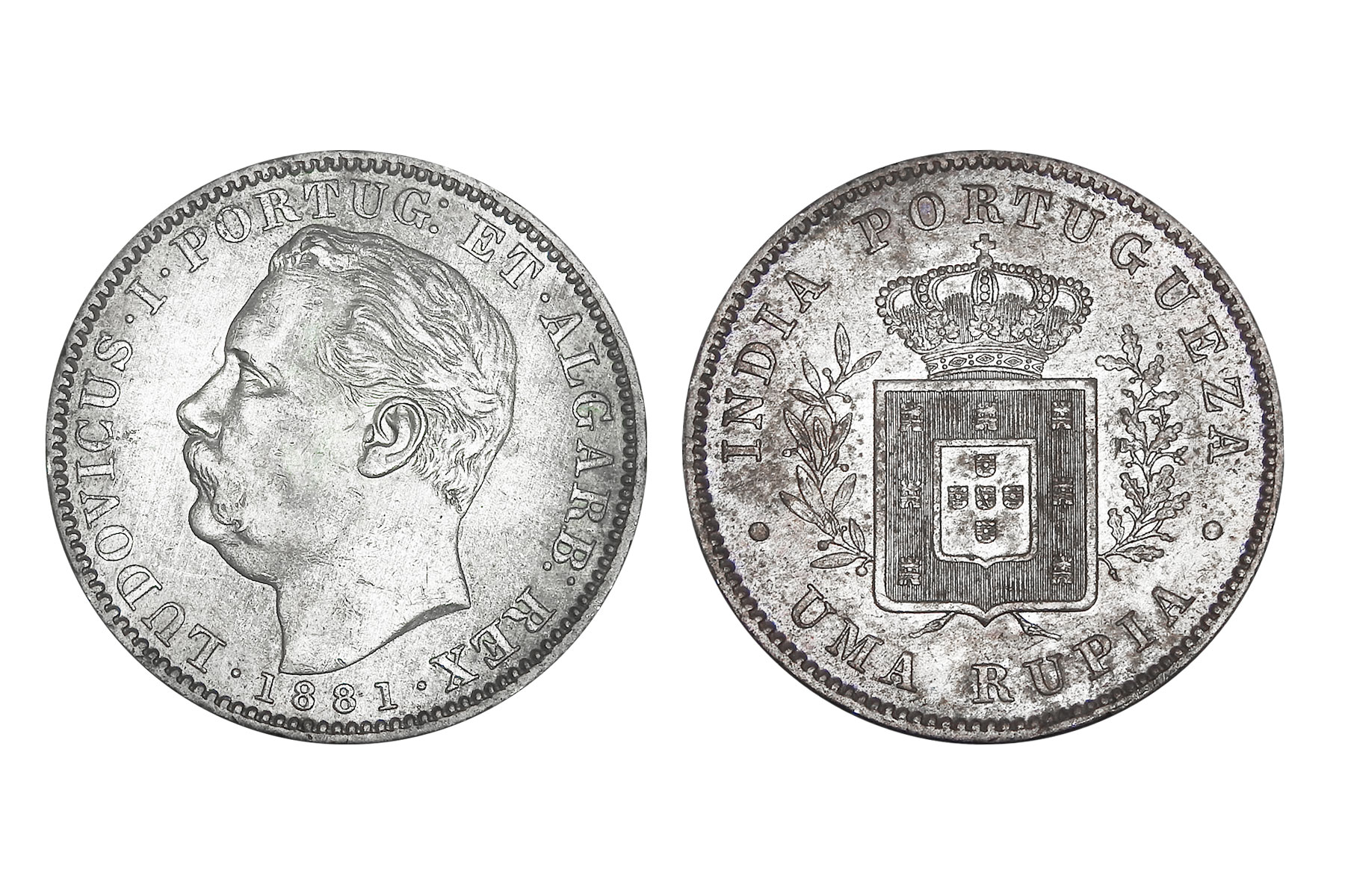 Portuguese India, Loudovic I(c. 1881CE), Silver Uma Rupia, 11.60grms, Extra Fine+, Very Scarce