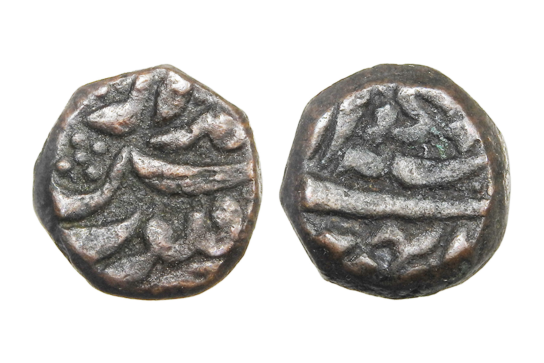 Mughal Empire, Akbar(c. 1556-1605CE), 3 Coins, Copper Dam, 1/2 Dam, 1/4 Dam, 20.70grms,9.40grms & 4.90grms, Minted at Balapur, 1/4 Dam is unique as both obverse and reverse has the mint mentioned, Very Fine+, Very Rare. Balapur is associated with Akbar’s Deccan campaigns during the struggle against the Nizam Shahi dynasty of Ahmadnagar and allied Deccan powers. The mint functioned in the context of Mughal military operations aimed at securing Berar and the eastern Deccan. Coins of Akbar from Balapur reflect imperial assertion in a contested frontier zone during active warfare.