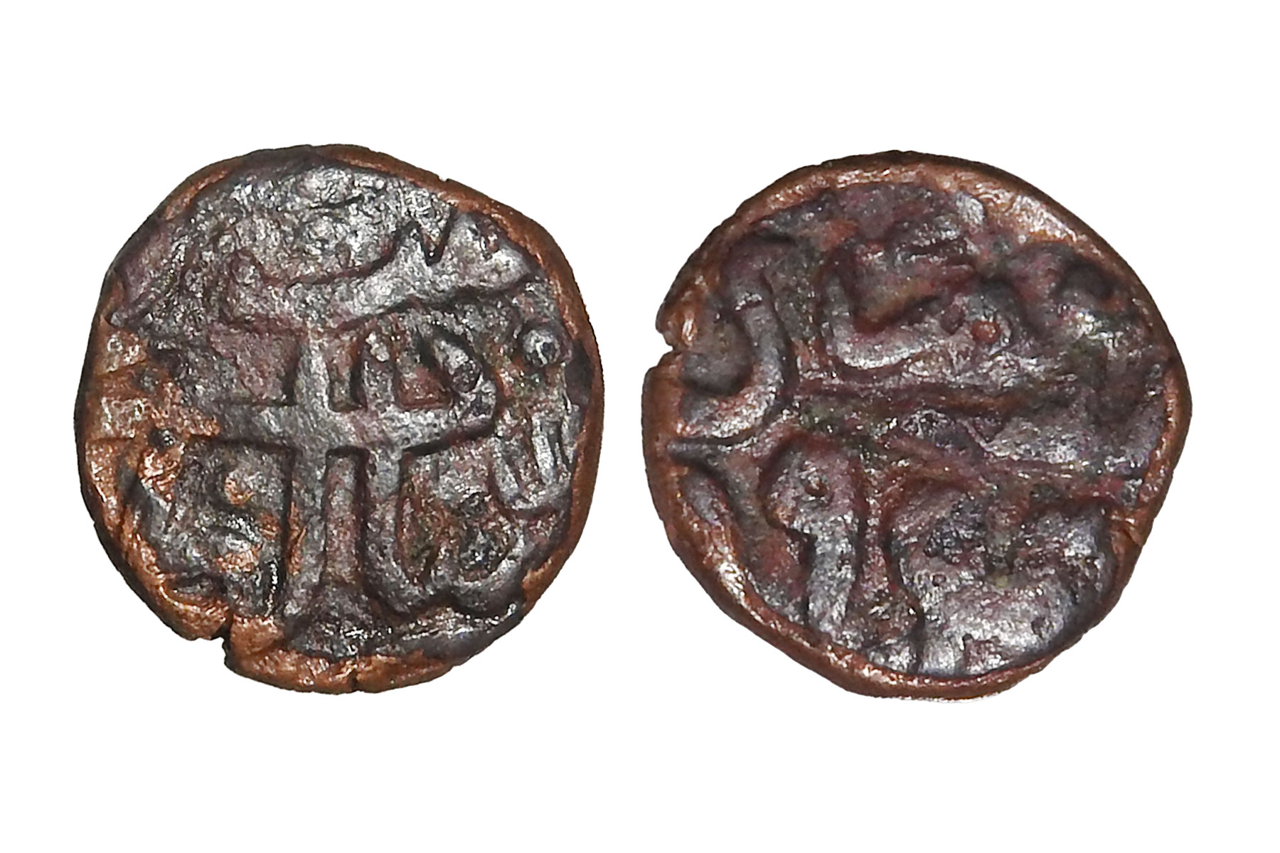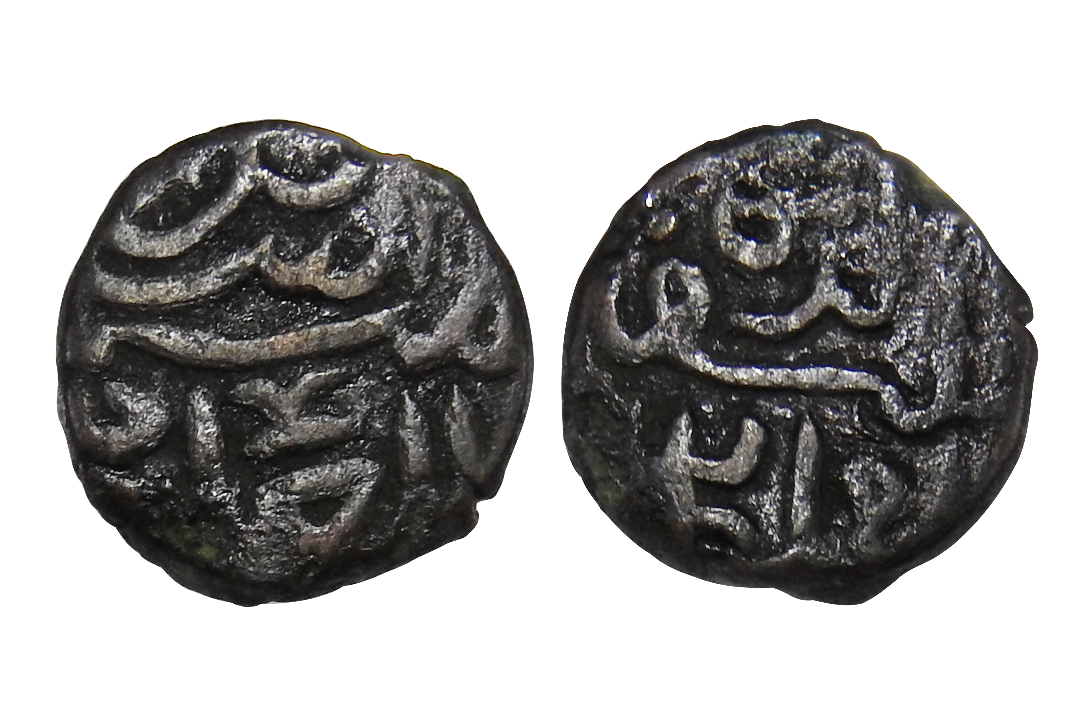 Delhi Sultanate, Suris, Islam Shah Suri(c. 1545-1552CE), Copper 1/8 Paisa, 2.50grms, Mintless Type, Obv. shāh/ islām / sher shāh / sulļān, Rev. khalifat al-zamān al-'ādil, G&G#D1085, Very Fine+, Very Scarce. 1/8 paisa coins are extremely rare. They were emergency, fractional issues, struck in very small quantities for micro-transactions in local markets. Islam Shah’s administration focused on full paisas, not tiny fractions. Their tiny size, rapid wear, melting, and neglect by hoarders caused very low survival. Many mints issued them briefly or not at all.