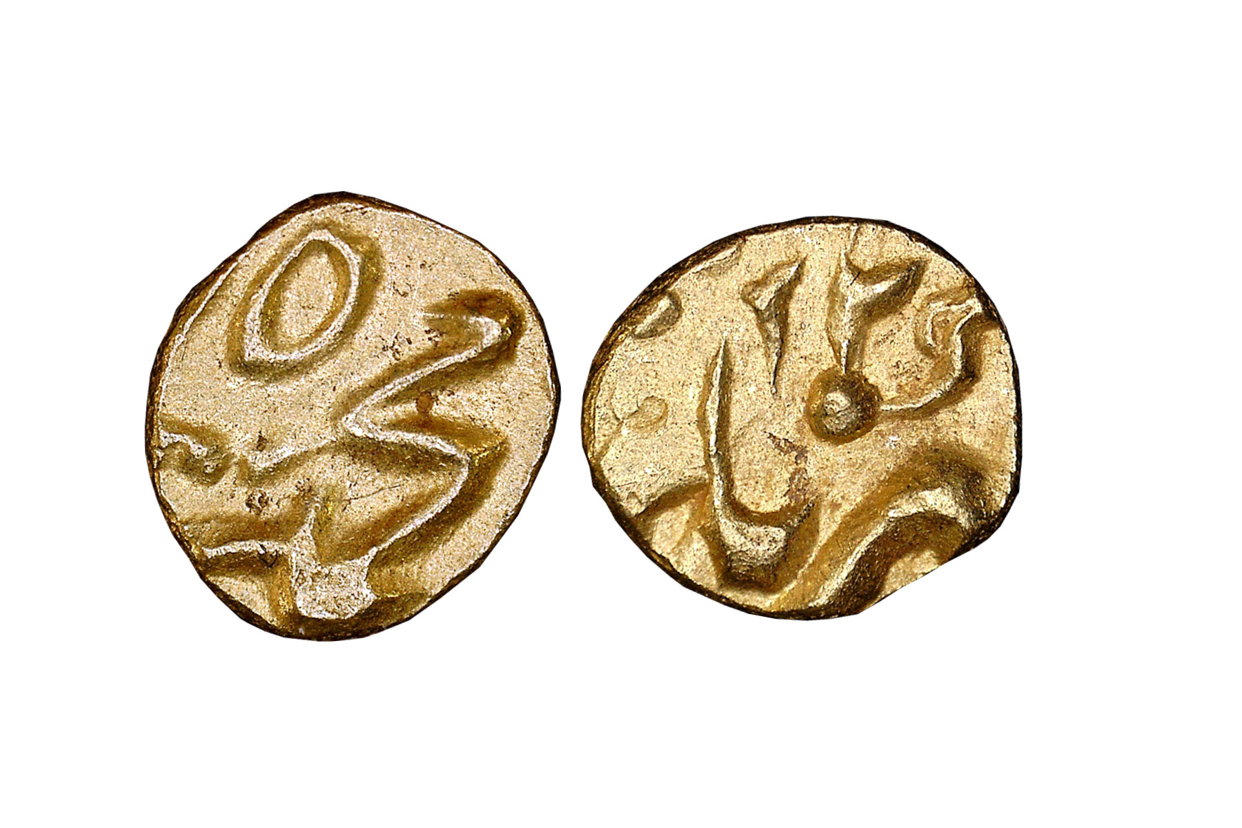 Muhammad Shah, Gold Half Fanam, 0.20 grams, Kadapa Mint, RY22, Obv. Persian legend