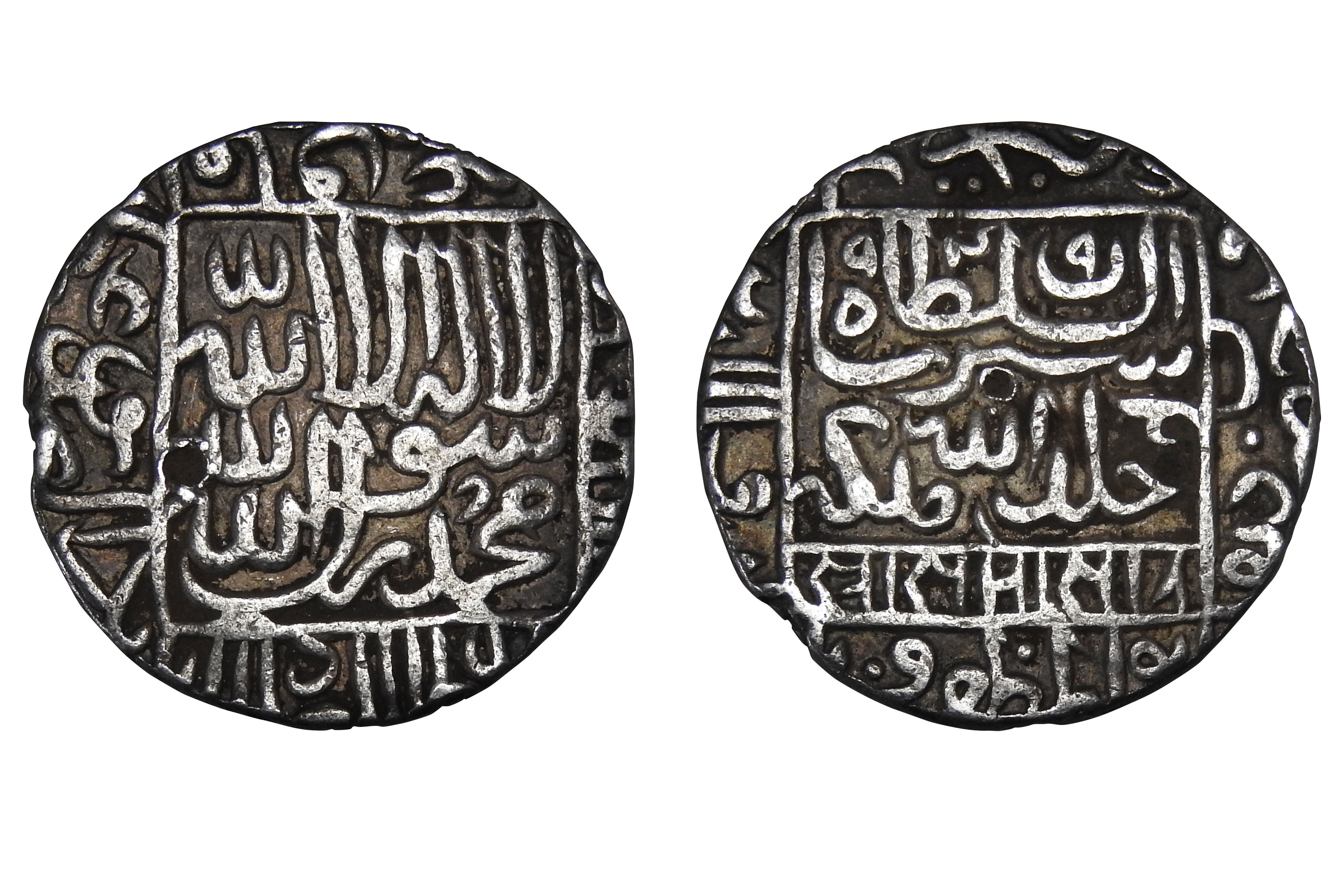 Sultans of Delhi, Suri Dynasty - Silver Rupee of Muhammad Adil Shah (1552-1556 AD), mintless type, G&G D1105, 11.10 grams. Obv: Arabic legend in rectangle Sultan Muhammad Adil Khallada Allah Mulkahu wa Saltanahu A'ala Amrahu and in Nagari Shri Sultan Mahamada below Rev: Kalima within a square, names and titles of four Caliphs in margins. VF+, Scarce.