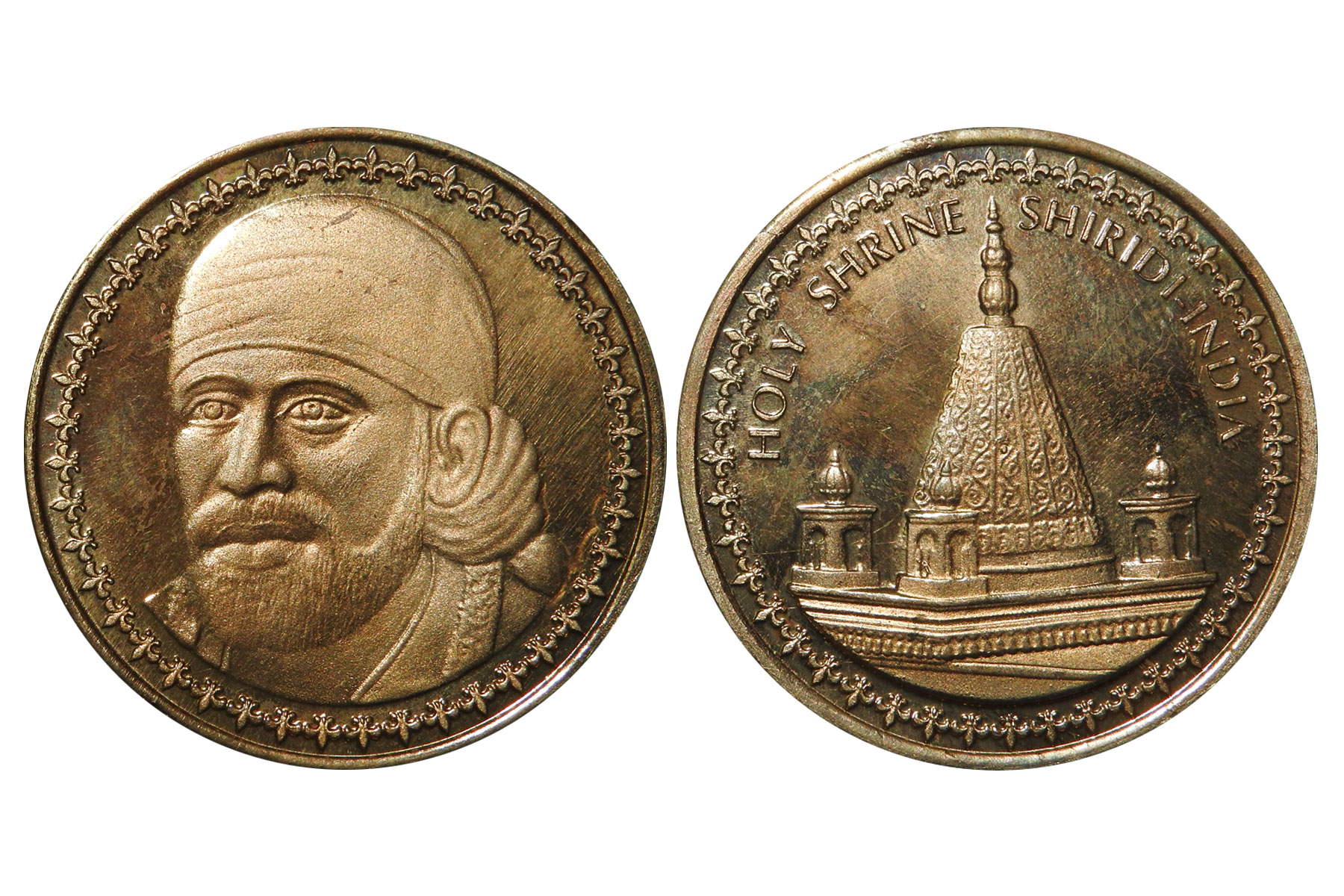 Circular silver coin, Obv. Shirdi Sai Baba`s portrait, Rev. Holy shrine of Shiridi. 23.20 grams.